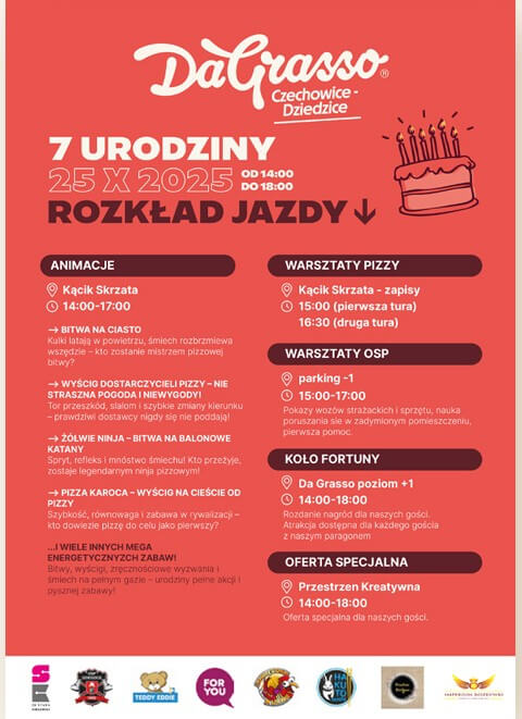 Ale nie tylko Kablownia świętuje, bowiem swoje URODZINY – już 7-dme z nami – obchodzić będzie także restauracja Da Grasso Czechowice-Dziedzice !